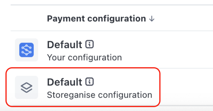 - From this page, make sure to select the Storeganise configuration under the Payment configuration section.